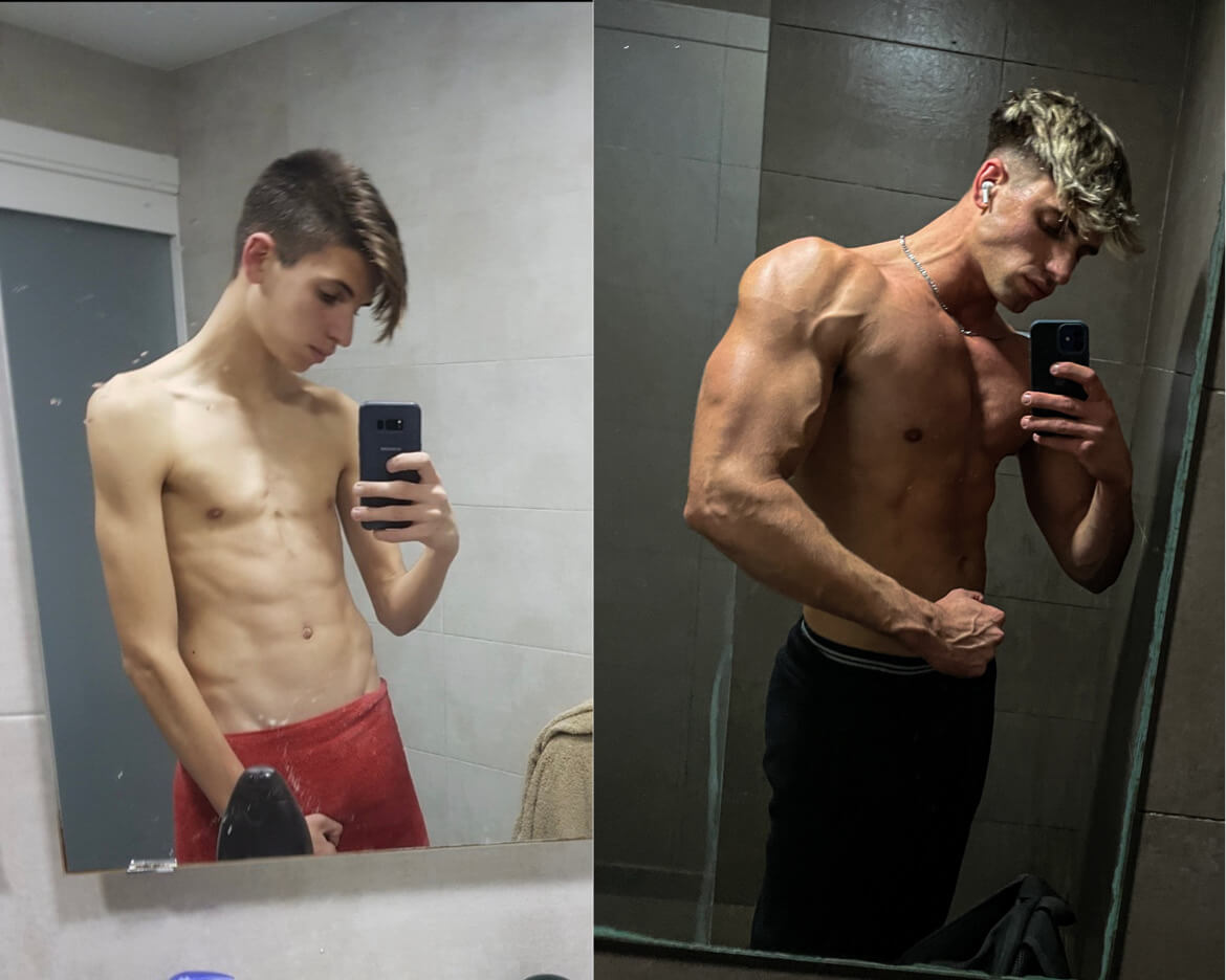 Miquel, amic de la infància dels CEO, és una mostra del que es pot aconseguir amb dedicació i confiança en el procés. Des de ben aviat va triar el nostre pla personalitzat, i avui, amb 19 anys, no només ha aconseguit un físic impressionant, sinó que també ha desenvolupat una mentalitat forta i enfocada. El seu progrés és una inspiració per als que comencen aquest camí.